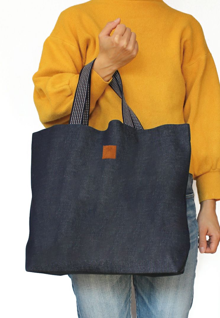 インディゴ横長バッグ【写真オリジナルタグ作成】