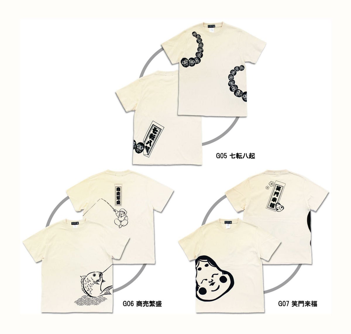 主に日本の柄を中心とした倉敷屋オリジナルTシャツですがシンプルに着られるものから、ポップにアレンジしたものまで 豊富な柄を取り揃えています。