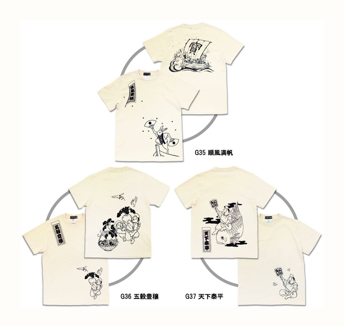 倉敷屋のTシャツは、自社デザイナーがデザインしたものや、日本古来の絵や柄を印刷しています。