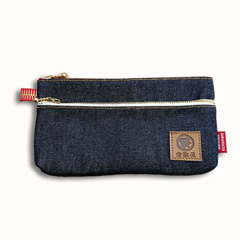 定規や付箋などを分けて入れられるポケットがついたデニムペンケース