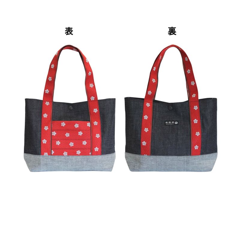 岡山の特産のデニムと畳縁をつかったトートバッグ