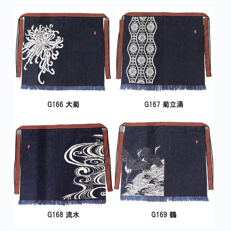 デニム生地を二枚合わせた帆前掛け