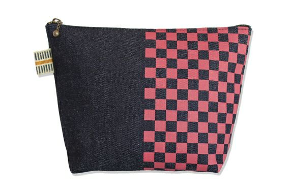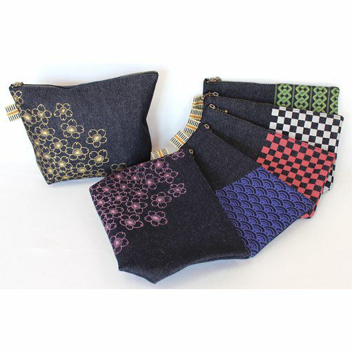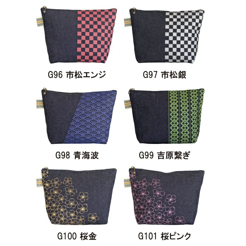 伝統的なオシャレアイテム!小紋柄をあしらったデニムポーチです。