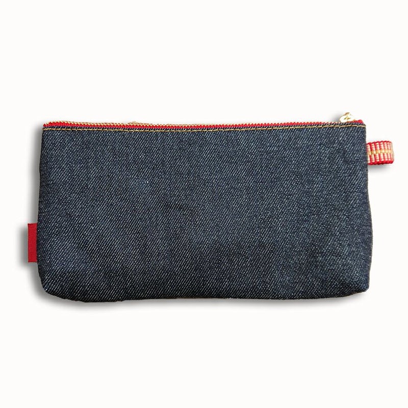定規や付箋などを分けて入れられるポケットがついたデニムペンケース