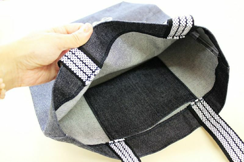A4用紙がすっぽり入る大きさで使い勝手抜群。丈夫なデニム製なので、ノートPC、書類など多少重さがあるものを入れても破れにくくなっています。